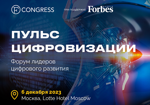 Приглашаем на IV ежегодный форум лидеров цифрового развития «Пульс цифровизации», который состоится 6 декабря в Lotte Hotel Moscow. FCongress при поддержке Forbes Russia объединит ведущих игроков цифрового рынка, топ-менеджмент инновационных компаний, телеком, медиа, e-commerce, финтех, ритейл, IT, операторов связи, банки, промышленные и производственные компании, инвестирующие в скорость, интеллект, технологии, способные трансформировать мир.