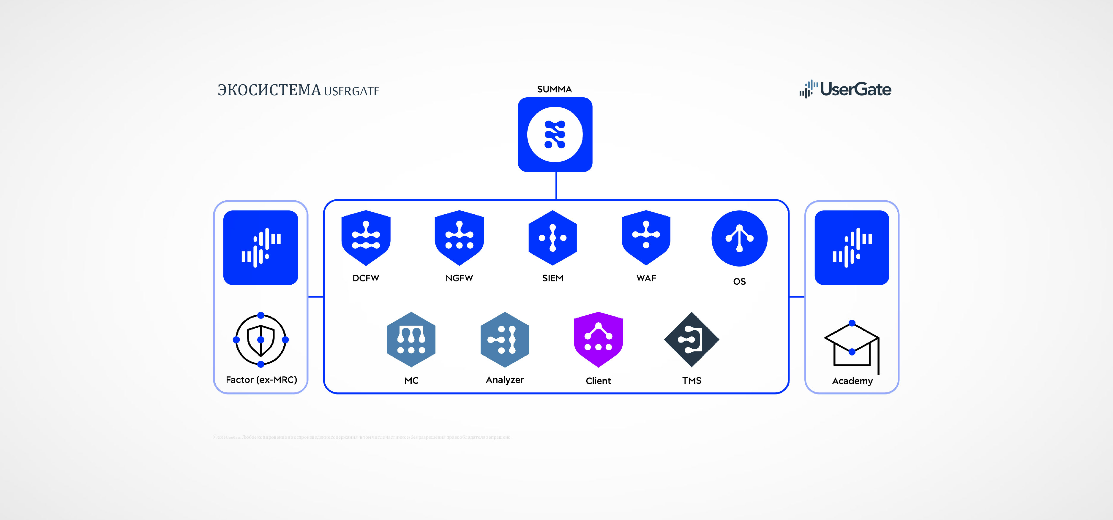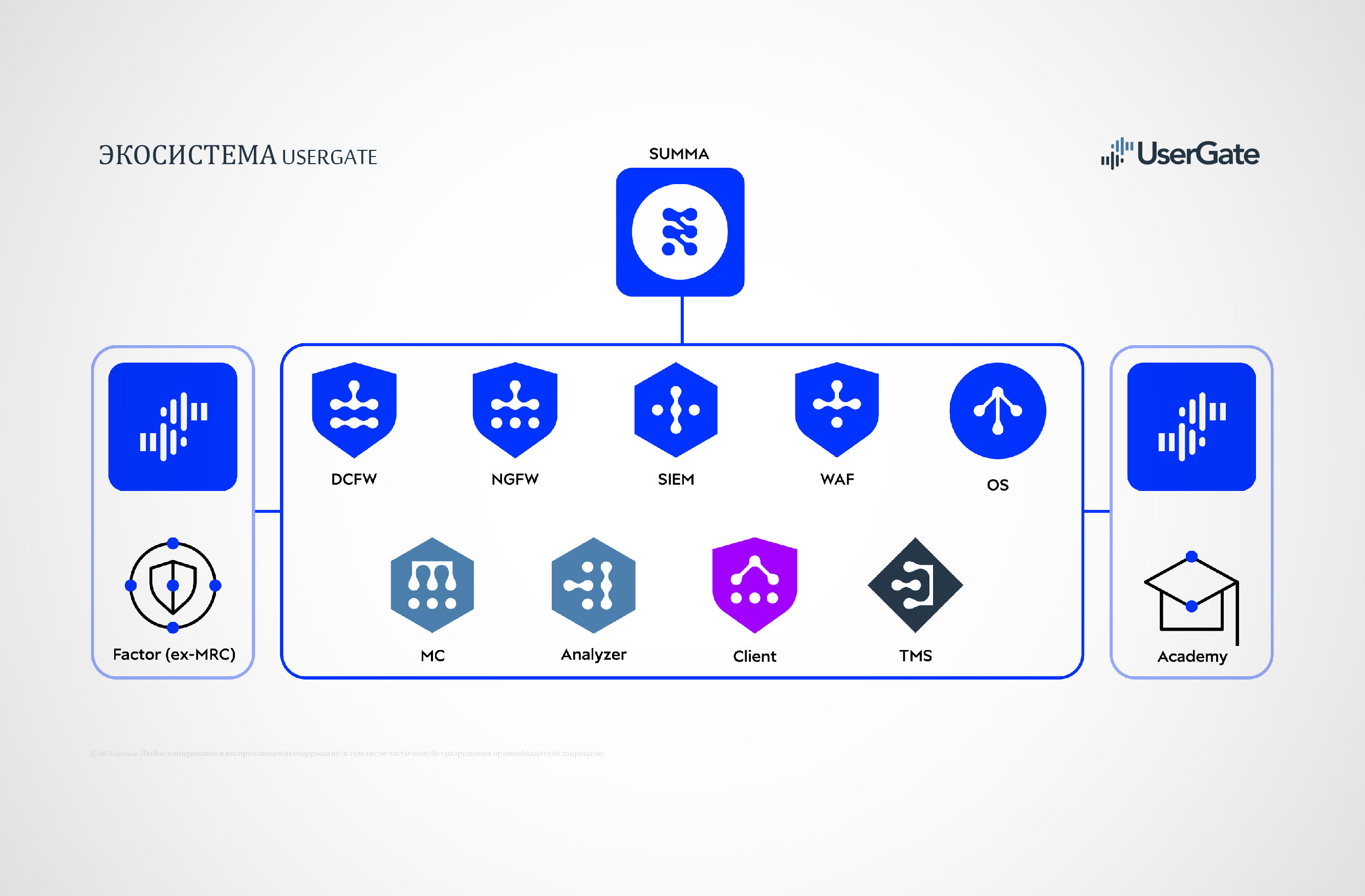 UserGate является ведущим российским разработчиком экосистемы ИБ-решений и микроэлектроники и обеспечивает своими решениями информационную безопасность корпоративных сетей самого разного размера от малого и среднего бизнеса до крупных корпораций с распределенной инфраструктурой.