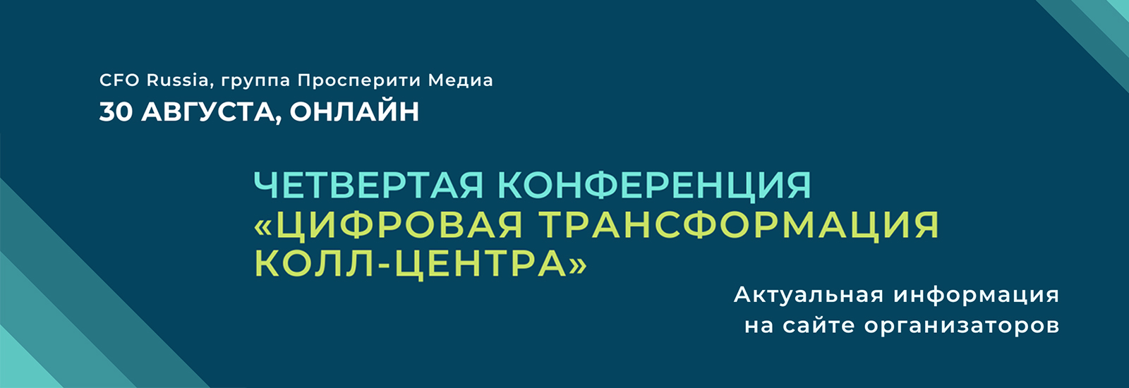 30 августа в онлайн формате пройдёт Четвертая конференция «Цифровая трансформация колл-центра» организованная группой «Просперити Медиа» и порталом CFO-Russia.ru.