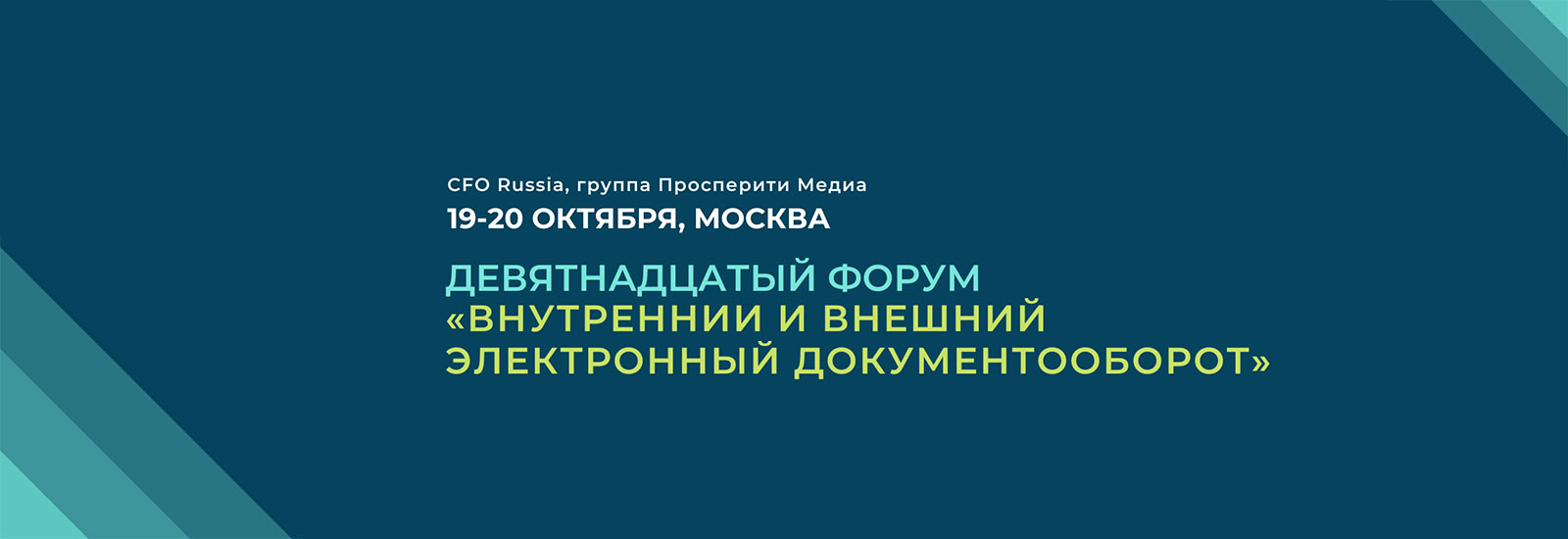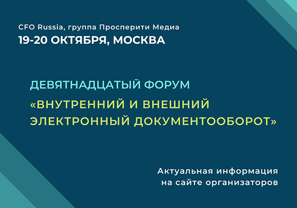 19-20 октября в Москве пройдет Девятнадцатый форум «Внутренний и внешний электронный документооборот» организованный группой «Просперити Медиа» и порталом CFO-Russia.ru.