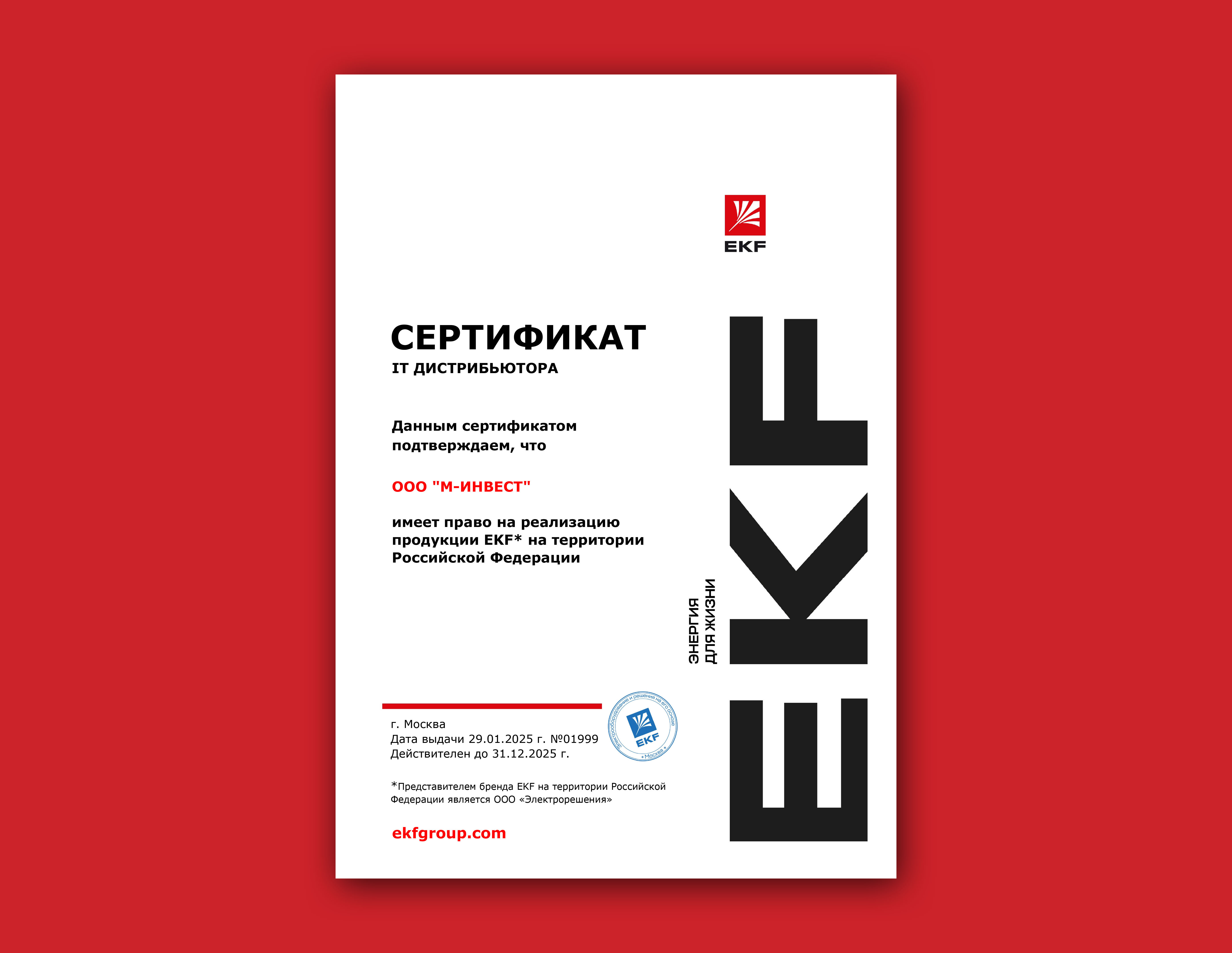 В актив компании ООО «Электрорешения», которая представляет бренд EKF в России, входят 2 производственные площадки во Владимирской области, сеть логистических центров, а также собственный отдел R&D и испытательная лаборатория, оснащенная новейшим оборудованием. Приоритетное направление работы компании – разработка комплексных энергоэффективных решений для промышленных предприятий, проектирования и строительства энергетических, гражданских и инфраструктурных объектов.