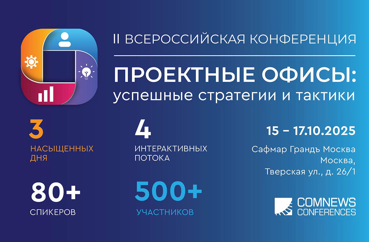 15-17 октября 2025г. в отеле Сафмар Грандъ Москва открывает свои двери II Всероссийская конференция «Проектные офисы: успешные стратегии и тактики» - главная встреча руководителей проектных офисов и их команд для обсуждения вопросов трансформации роли проектных офисов и обмена опытом применения проектного подхода в разных сферах бизнеса.Регистрация уже открыта.