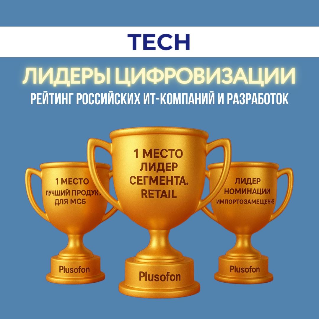 Компания «Плюсофон» заняла лидирующие позиции в исследовании «Рейтинг IT‑решений для предпринимателей», продемонстрировав высокий уровень разработок и вклад в развитие отечественного IT‑рынка.По итогам экспертной оценки продукт компании одержал победу в трёх ключевых номинациях: