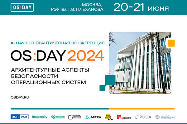 XI научно-практическая конференция OS DAY состоится 20-21 июня 2024 года, она будет посвящена архитектурным и инженерным решениям в создании операционных систем, обеспечивающим безопасность программного обеспечения на различных уровнях. Помимо разработчиков российских операционных платформ в ней примут участие представители компаний-производителей аппаратных систем и компаний-заказчиков программно-аппаратных комплексов. Организатор конференции – консорциум научных институтов и компаний-вендоров ОС: ИСП РАН, «Лаборатория Касперского», НТП «Криптософт», «Открытая мобильная платформа», Группа Астра, «Базальт СПО», «РЕД СОФТ», РОСА и НИЦ «Институт имени Н.Е. Жуковского».
